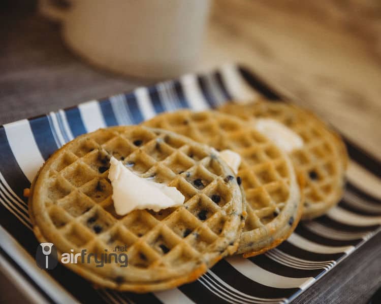 Remove waffles from air fryer. Add additional butter/margarine (or nut butter) and syrup (or jelly/jam) if desired.