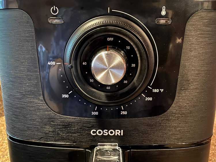 I was a little worried that the knob timer wouldn’t be very precise, so we ran a test. We programmed a cell phone timer to 10 minutes and turned the air fryer timer to 10 minutes to check the accuracy of the Cosori knob timer. The first two times we ran it, the air fryer ended almost 30 seconds before the cell phone timer did. But the third time I ran it, they ended at the exact same time. What was the difference? Like many timer dials, there’s just a little bit of give in the dial. When you first move the dial to align just so with the 10 then let go, the dial immediately dropped just a bit shy of it. The third time, I moved the knob just past the 10 then let go and it settled right at the 10 and started counting down.